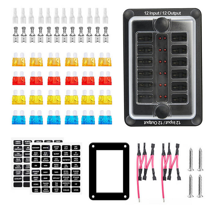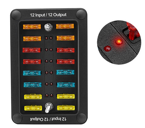 32V 12 in 12 Out 12-Way Fuse Box With LED Indicator Light Waterproof