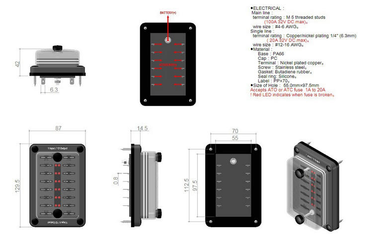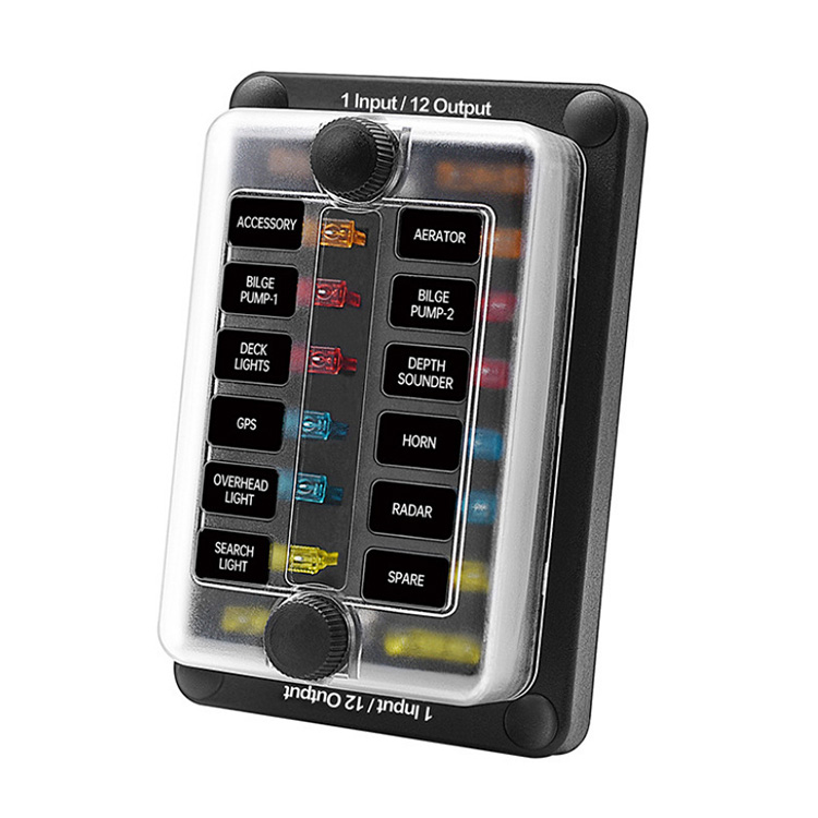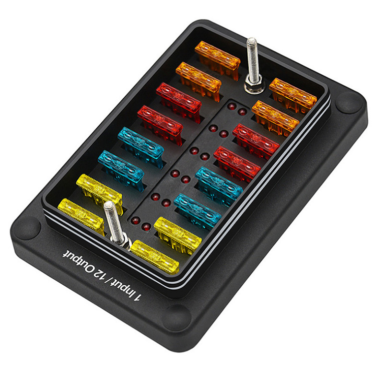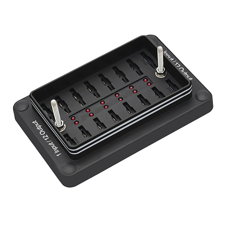 32V 1 in 12 Out 12-Way Fuse Box With LED Indicator Light Waterproof