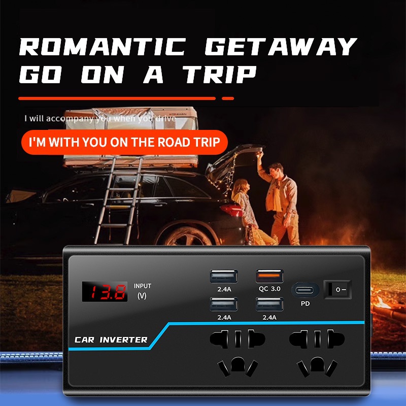 12V/24V to 110V/220V Car Inverter with AC Outlet & Type-C Fast Charger