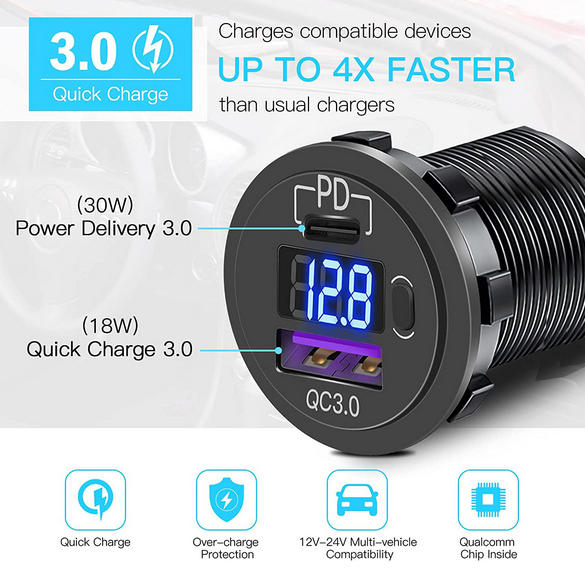 Upgraded Car Charger PD & USB Port for Vehicle Use