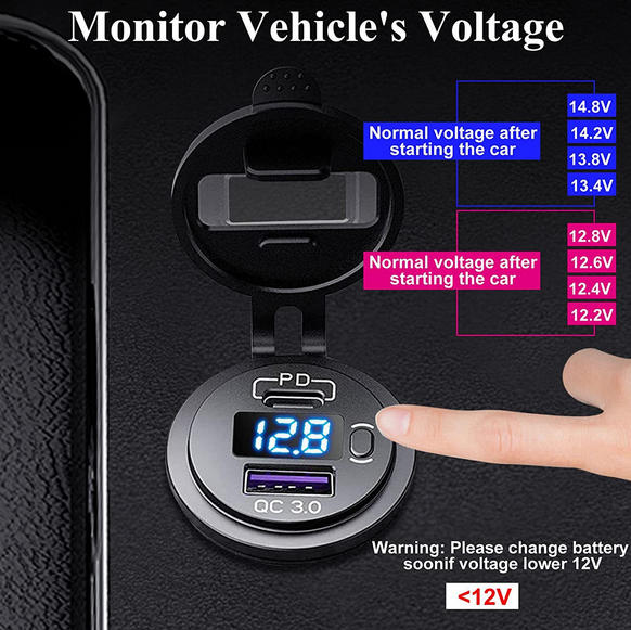5 Colors 3.1A Dual USB Car Charger with Voltage Monitor LED for RV Motorhome