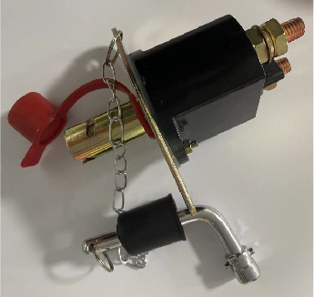 The main switch rotates 90°, and the battery can be connected or disconnected immediately. The button is locked in the "on" position and in the "off" position.