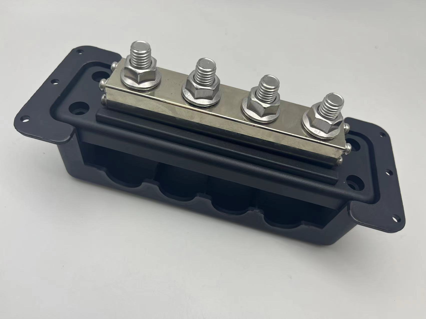 【Product Type】: 4 stud ( 4x 3/8" M10 ) power distribution block bus bar, maximum voltage: 300V, rated current: 600A.