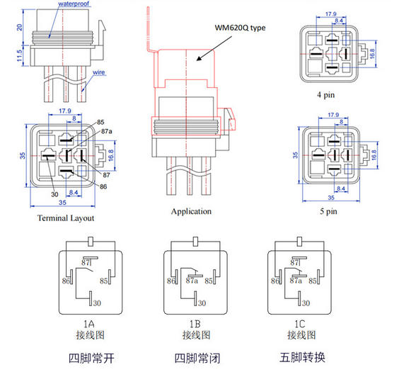 Waterproof 40A 12V/24V 4/5 Pin Automotive Relay