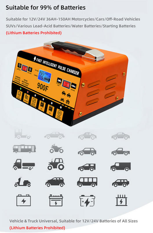 Suitable for 12V/24V 36AH-150AH Motorcycles/Cars/Off-Road VehiclesSUVs/Various Lead-Acid Batteries/Water Batteries/Starting Batteries