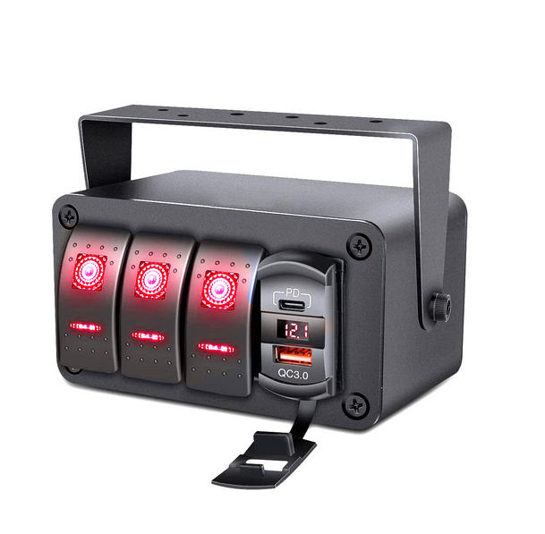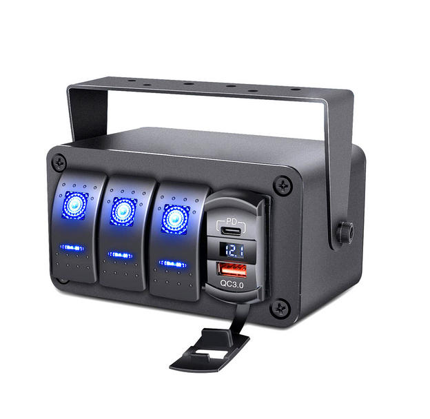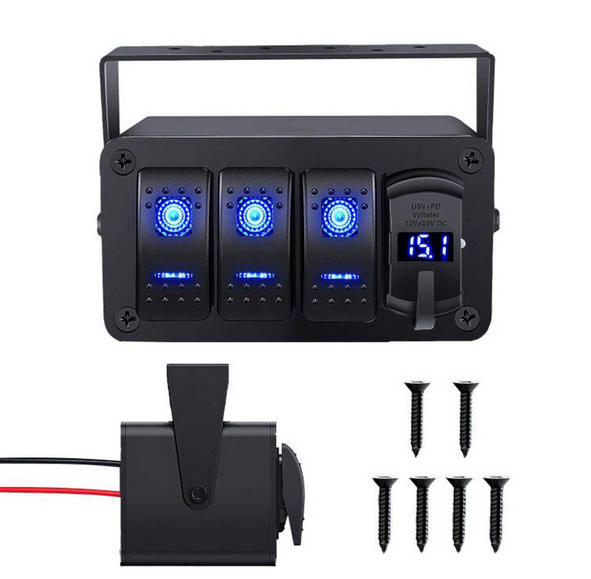 Universal 3 Gang Combination Switch Panel with Car Charger for Automotive Marine