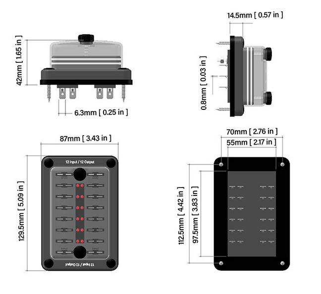 32V 12 in 12 Out 12-Way Fuse Box With LED Indicator Light Waterproof
