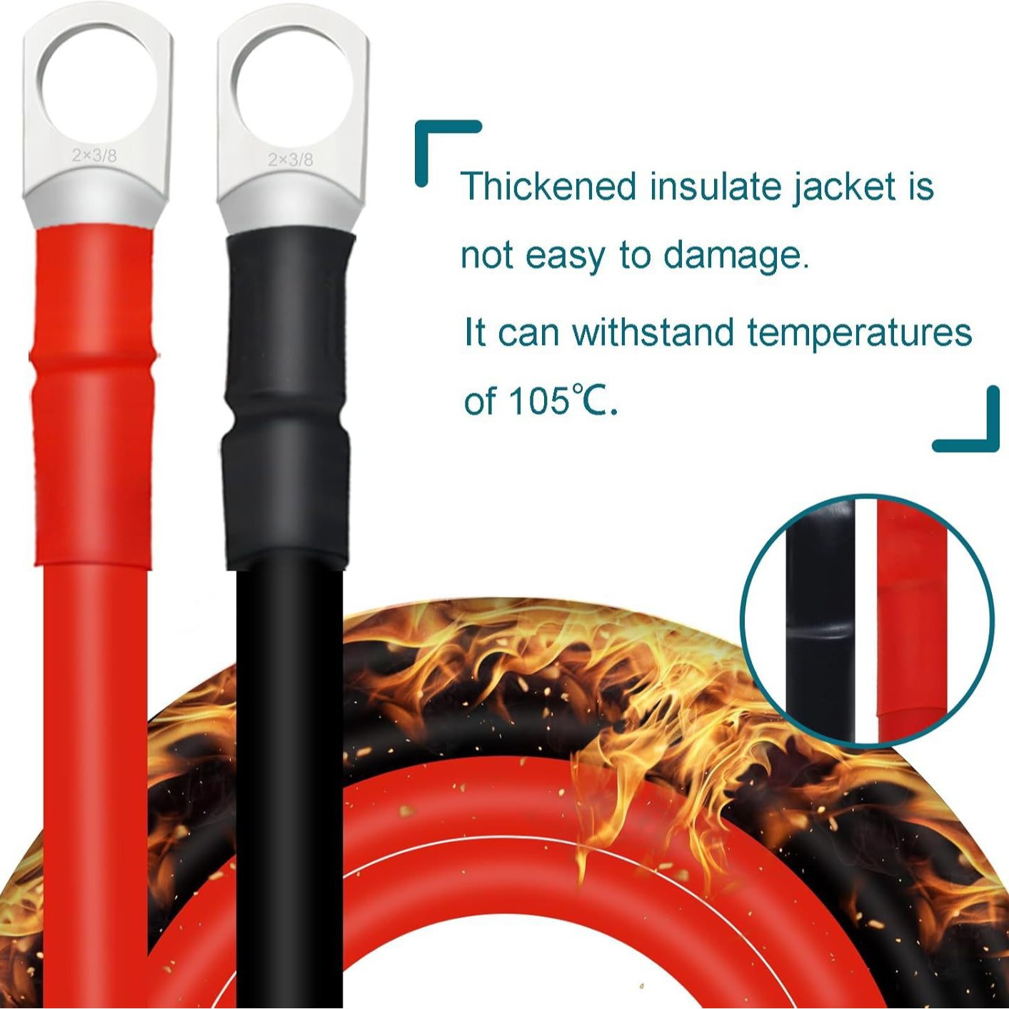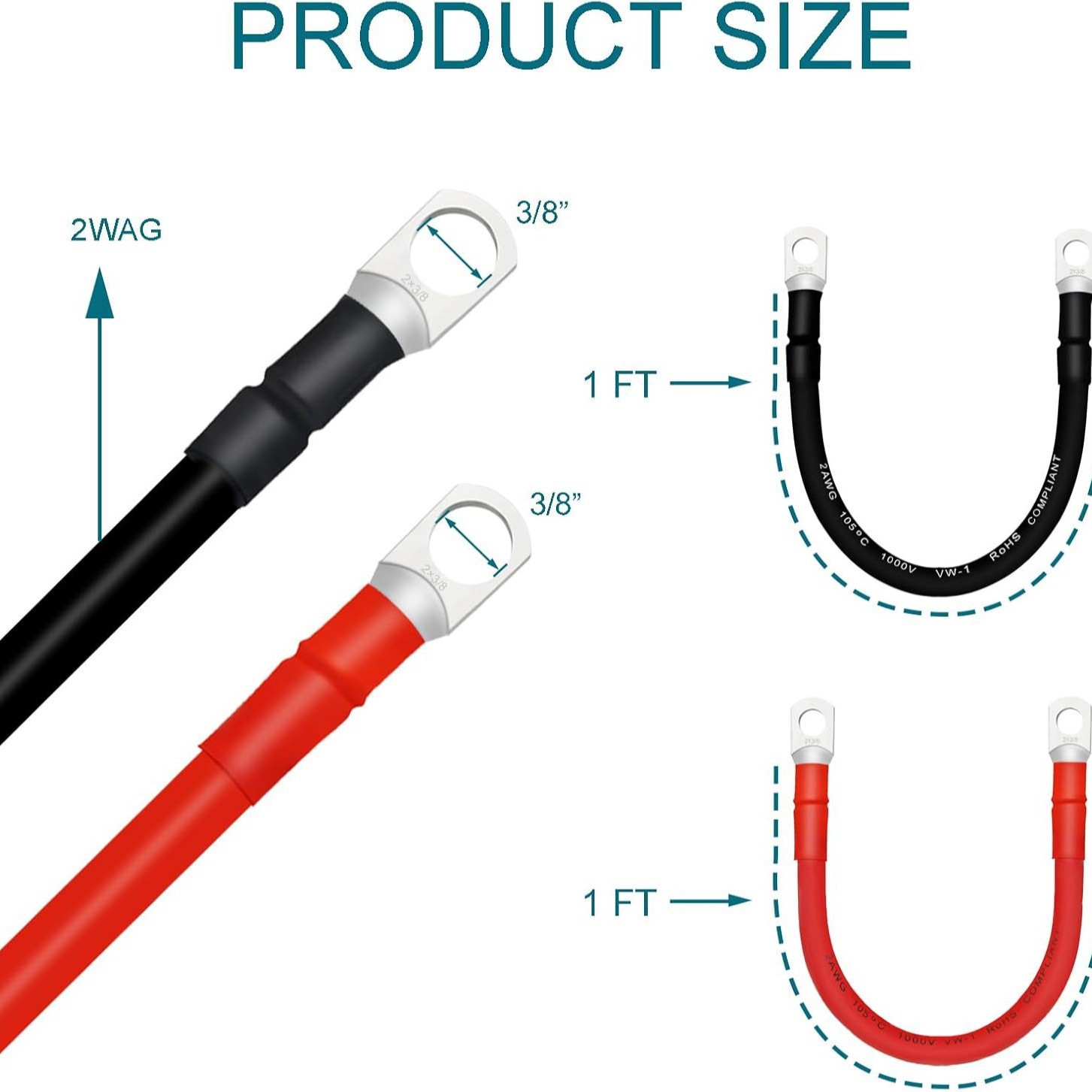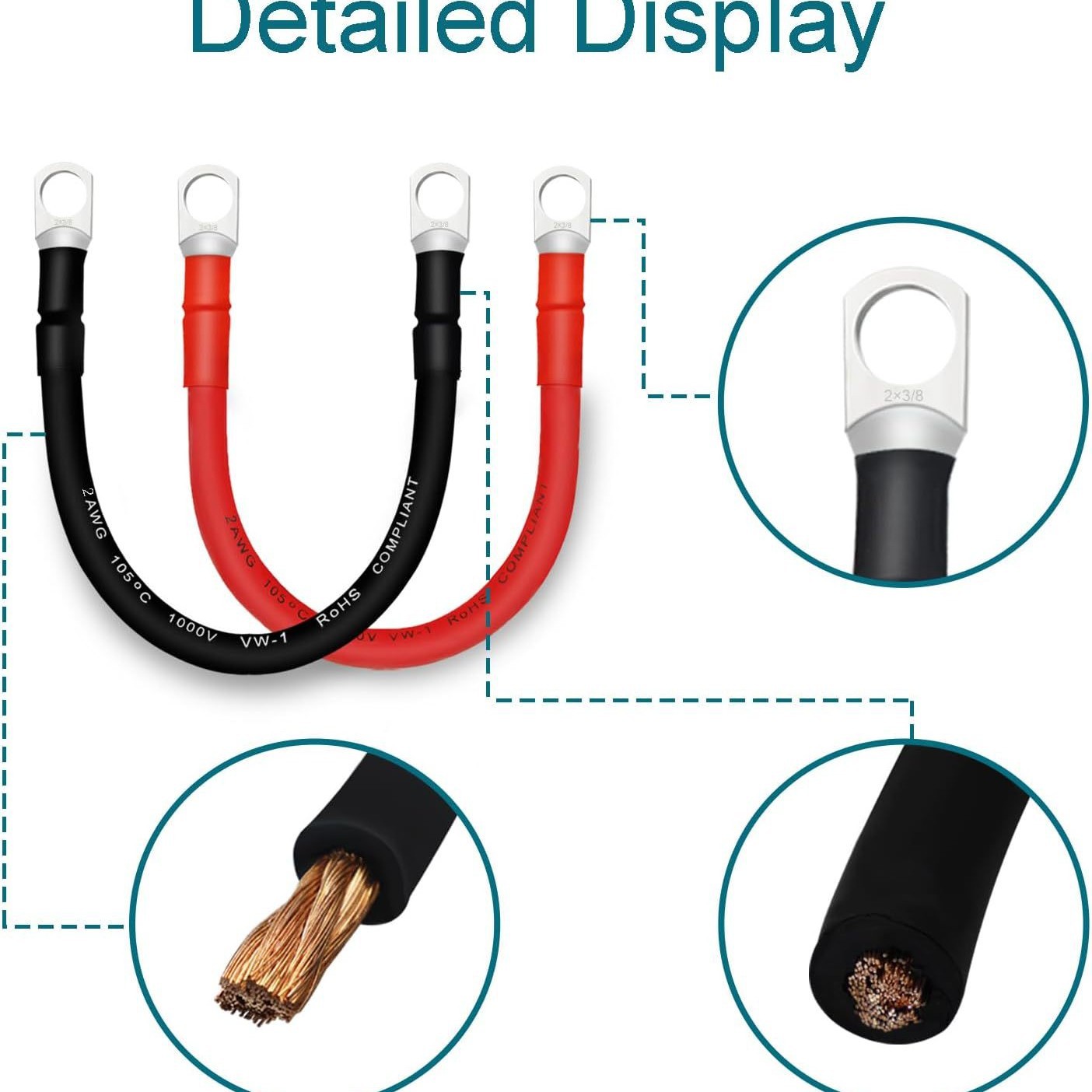 2AWG Battery Cable Copper Battery Cable with Terminals Leak-Proof Battery Connection Wires