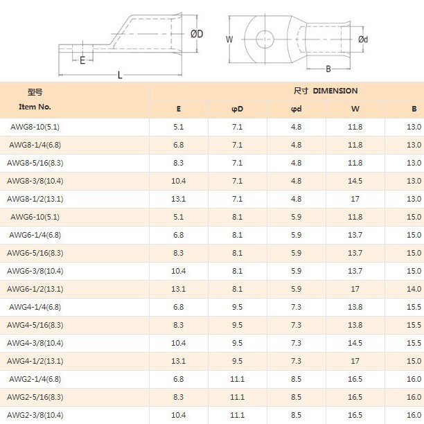AWG8#10, AWG8*1/4, AWG8*5/16, AWG8*3/8, AWG8*1/2, AWG6#10, AWG6*1/4, AWG6*5/16, AWG6*3/8, AWG6*1/2, AWG4*1/4, AWG4*5/16, AWG4*3/8, AWG4*1/2, AWG2*1/4, AWG2*5/16, AWG2*3/8, AWG2*1/2, AWG1*1/4, AWG1*5/16, AWG1*3/8, AWG1*1/2, AWG1/0*1/4, AWG1/0*5/16, AWG1/0*3/8, AWG1/0*1/2, AWG2/0*1/4, AWG2/0*5/16, AWG2/0*3/8, AWG2/0*1/2, AWG3/0*1/4, AWG3/0*5/16, AWG3/0*3/8,