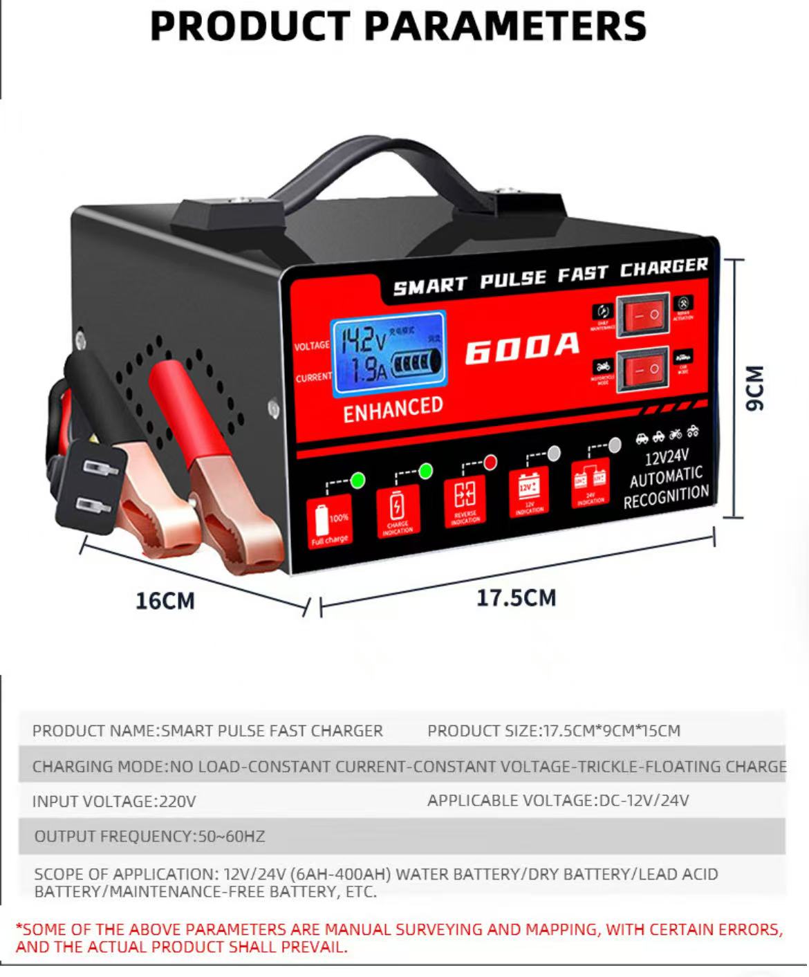 SCOPE OF APPLICATION: 12V/24V(6AH-400AH) WATER BATTERY/DRY BATTERY/LEAD ACID BATTERY/MAINTENANCE-FREE BATTERY,ETC.