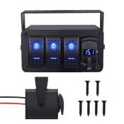 Universal 3 Gang Combination Switch Panel with Car Charger for Automotive Marine