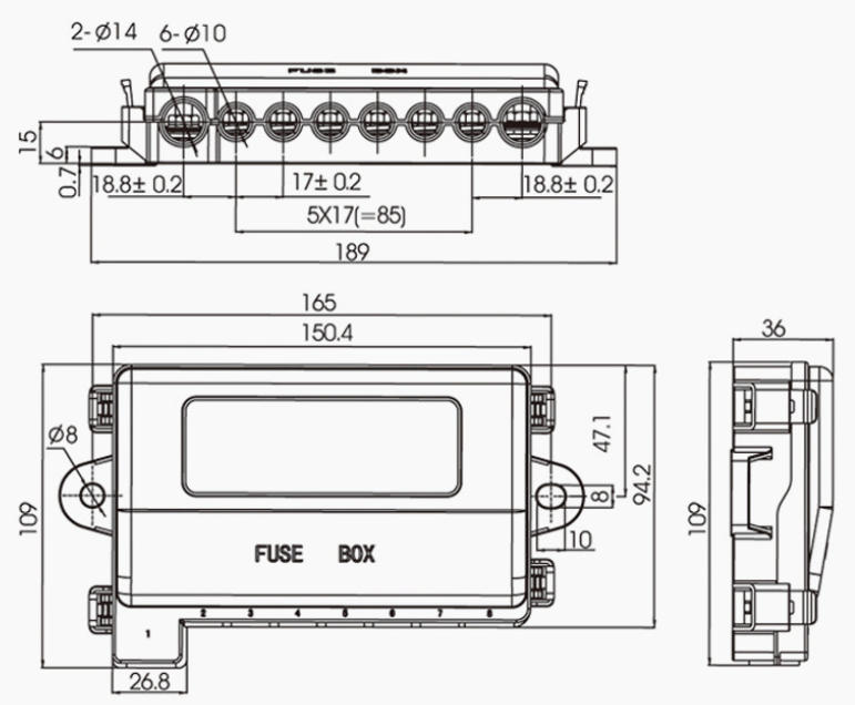 100A 8 Way Circuit Fuse Blade Box wirh Plug-in Fuse With Bolt or not