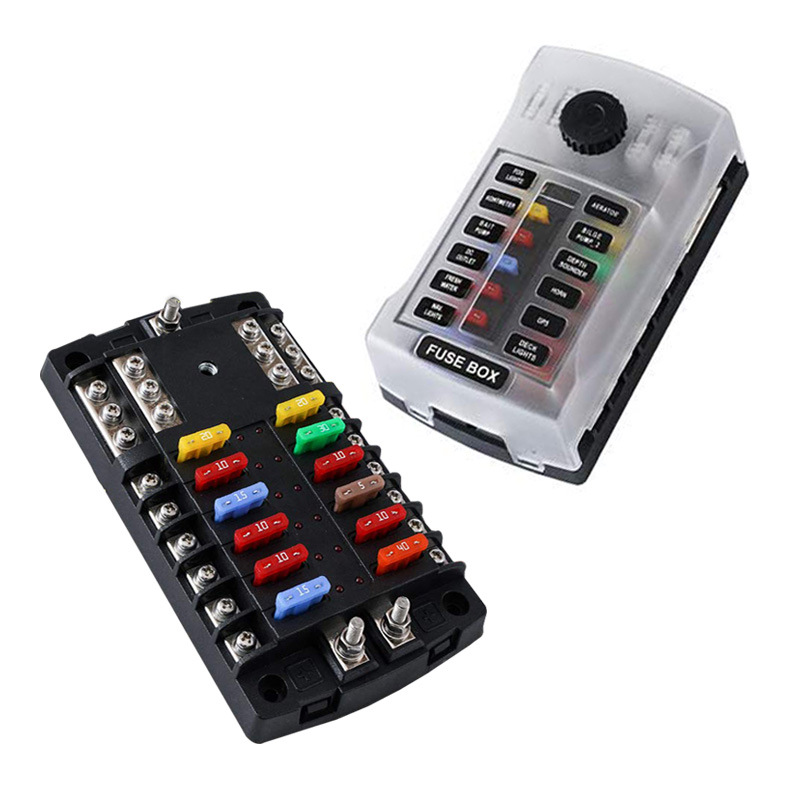 Fuse Box 12-Way Fuse Block with Light Indication LED Blade Fuse Block for Car Truck Boat Marine Automotive