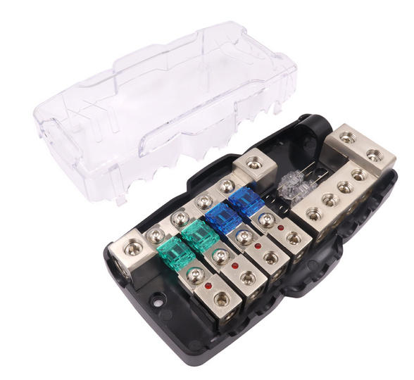 2-in 4-out Fuse Box Holder with LED Light for Car Audio Modification Accessories