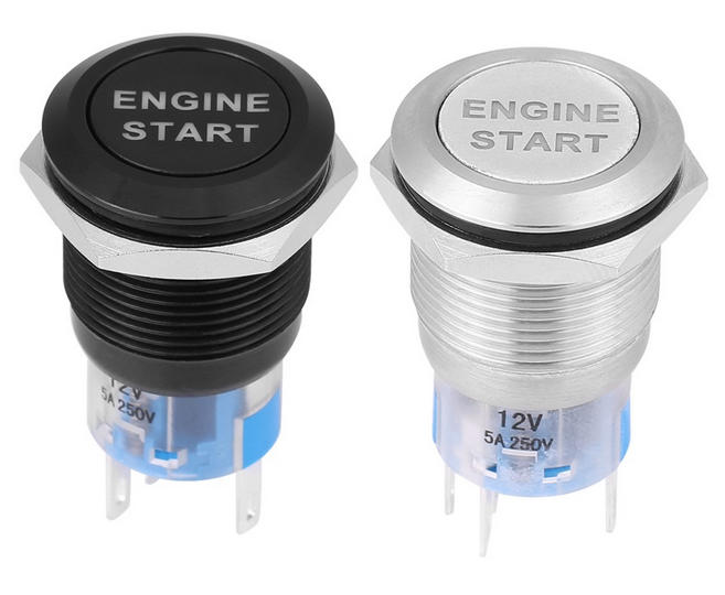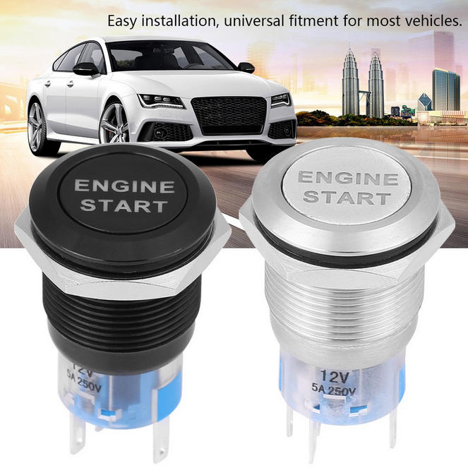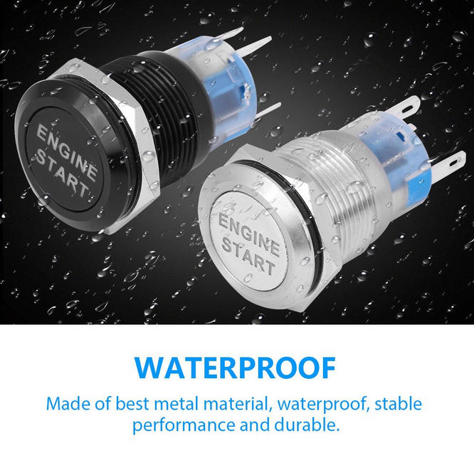 19mm 12V Metal Push Button Start Ignition Switch Momentary with LED Light for Car Modification Waterproof