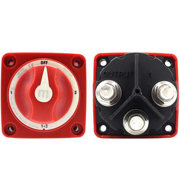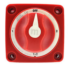 Switches isolated battery banks to all loads or combines battery banks to all loads