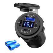 Dual Port USB Fast Charger QC3.0 Type C PD Dual USB Socket For Car Socket Power Outlet Waterproof
