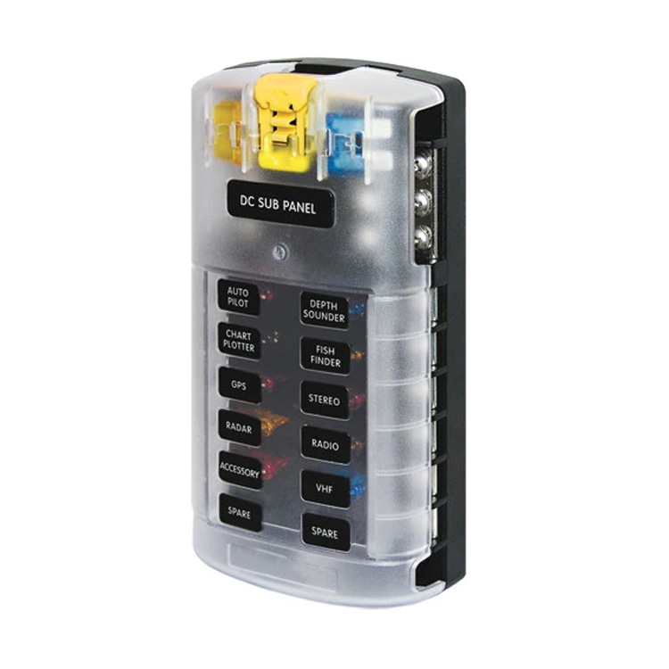 - Cover satisfies ABYC/USCG requirements for insulation, incorporates an easy to open push button latch providing easy access to fuses, storage for two spare fuses, and label recesses that accept Blue Sea Systems" Small Format Labels for circuit identification